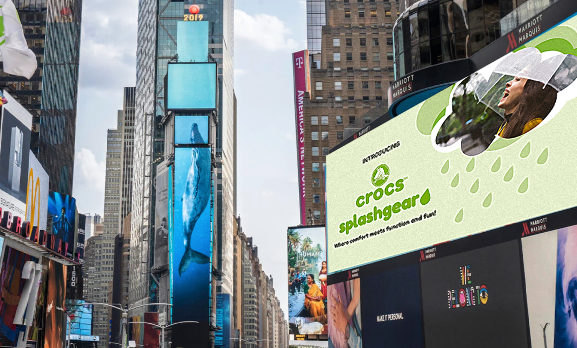 On the left, mockups of a Times Square advert and the website showcasing the new line.